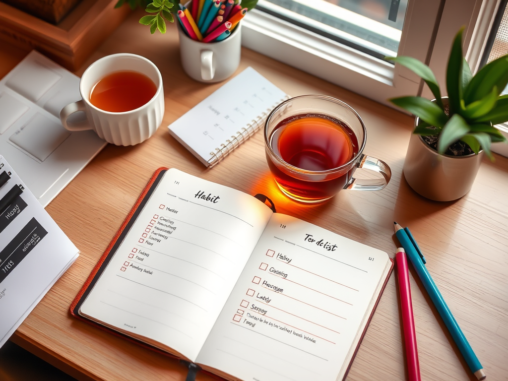 📌 Habit Trackers – Use grids or charts to visually track progress on habits like exercise, sleep, or reading.