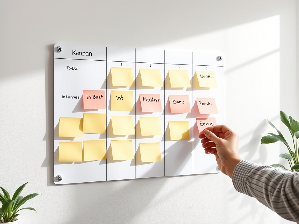 - Write tasks on sticky notes (for a physical board) or use tools like Trello, Notion, or ClickUp for a digital version.