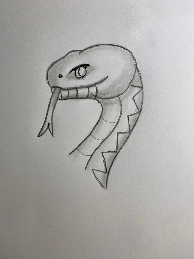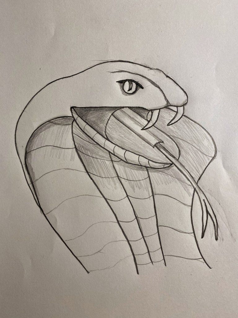 A fierce cobra with fangs bared, ready to strike. Power and fear are captured in this lifelike sketch.